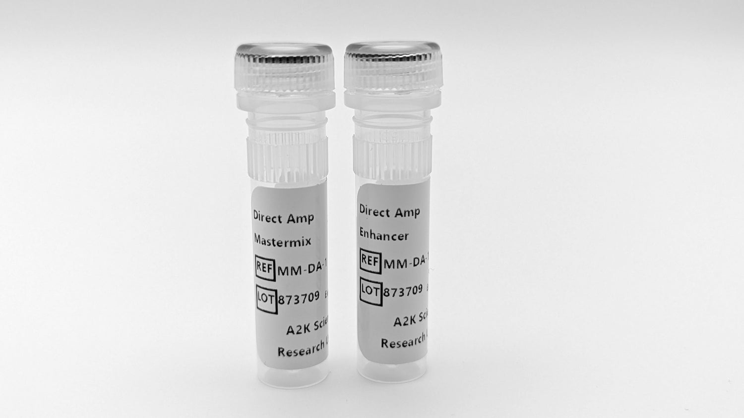 The A2K Direct Amp Master Mix is a pre-prepared, one-step, 4X concentrated master mix tailored for probe-based real-time quantitative PCR (qPCR). It incorporates a mutant hot-start reverse transcriptase, a mutant hot-start DNA polymerase, dNTPs, MgCl2, enhancers, and stabilizers. Additionally, an optional enhancer solution is included for neutralizing PCR inhibitors, such as nucleases in crude samples. This versatile product is suitable for direct amplification of both crude samples and purified nucleic acid in PCR applications.