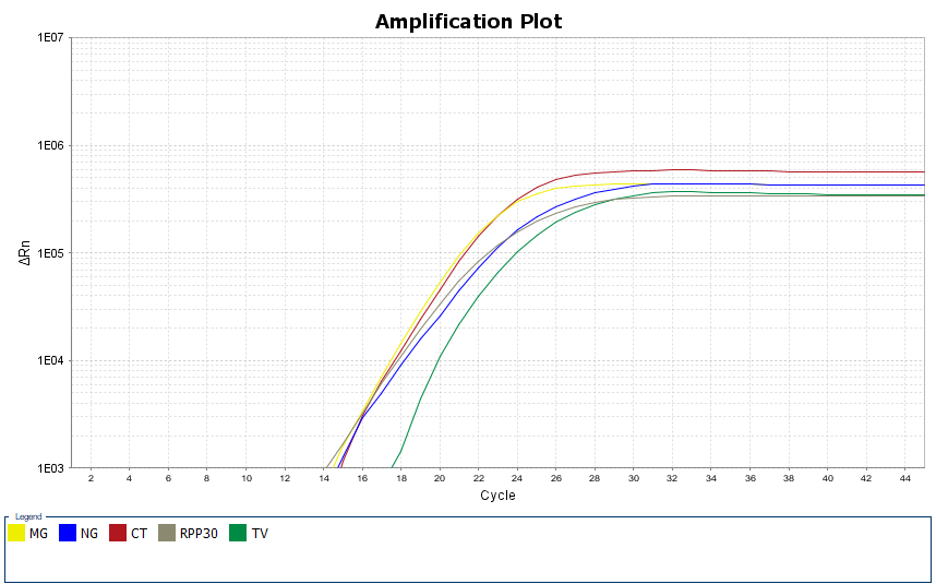 The A2K Scientific STI 5-Plex Panel Combo Kit is a multiplex real‐time PCR solution that contains the assay and master mix needed for the simultaneous detection of Chlamydia trachomatis (CT), Neisseria gonorrhoeae (NG), Mycoplasma genitalium (MG), and Trichomonas vaginalis (TV) in extracted human samples. Human ribonuclease P (RNase P) is included as endogenous sample collection control.