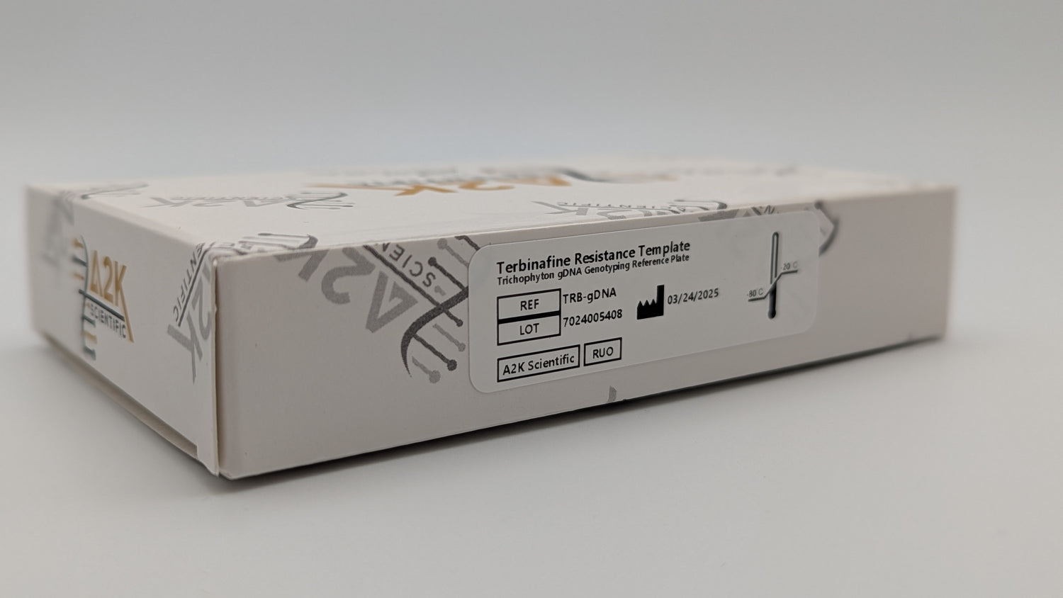 The A2K Terbinafine resistance template is a plate containing genomic DNA from 21 unique clinical isolates containing the mutations within the terbinafine resistance panel. This product allows labs to generate an SNP genotyping template for accurate SNP classification. Additionally the plate may be used for assay verification and performance.